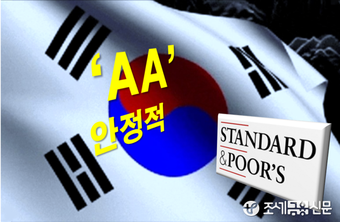 26일 국제신용평가사 스탠더드앤드푸어스(S&P)는 한국의 장기 국가신용등급을 종전 등급인 'AA'로 유지키로 하고, 등급 전망도 기존과 같은 '안정적'으로 부여했다고 밝혔다. 단기 국가신용등급 역시 기존의 'A-1+'을 유지했다.