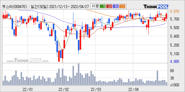 부스타의 2021년 매출액은 982억으로 전년대비 -2.4% 하락했고, 영업이익은 0억으로 적자전환했다. 이 회사의 매출액 증감률과 영업이익 증감률은 각각 코스닥 하위 24%, 하위 1%에 해당된다.