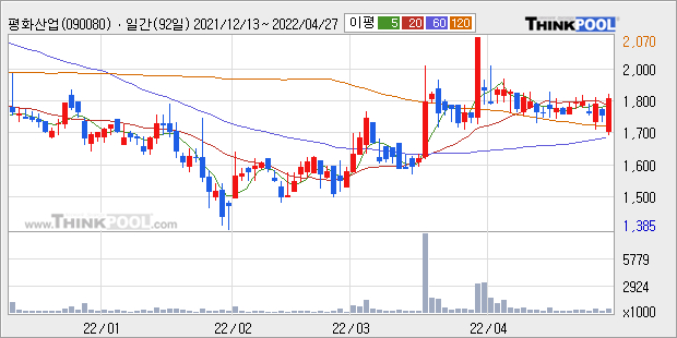 평화산업의 2021년 매출액은 전년대비 25.3% 늘어난 4241억원이고, 영업이익은 흑자전환해서 59억원을 기록했다. 이 회사의 매출액 증감률과 영업이익 증감률은 각각 코스피 상위 28%, 상위 16%에 해당된다.