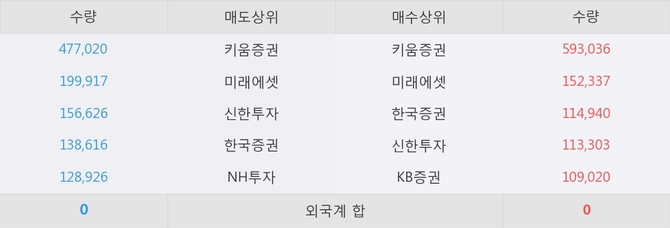이 시각 주요 거래원은 미래에셋, 키움증권, 한국증권 등이 매수 상위 창구에 자리하고 있다.