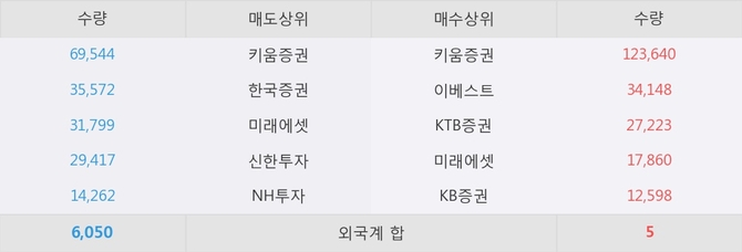이 시각 주요 거래원은 미래에셋, 키움증권, 이베스트 등이 매수 상위 창구에 자리하고 있다.