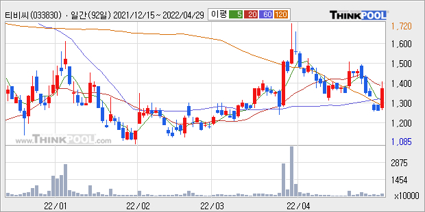 티비씨는 2021년 매출액 428억원과 영업이익 43억원을 기록했다. 전년대비 매출은 21.4%, 영업이익은 48.3% 각각 상승했다. 이 회사의 매출액 증감률과 영업이익 증감률은 각각 코스닥 상위 37%, 상위 39%에 해당된다.