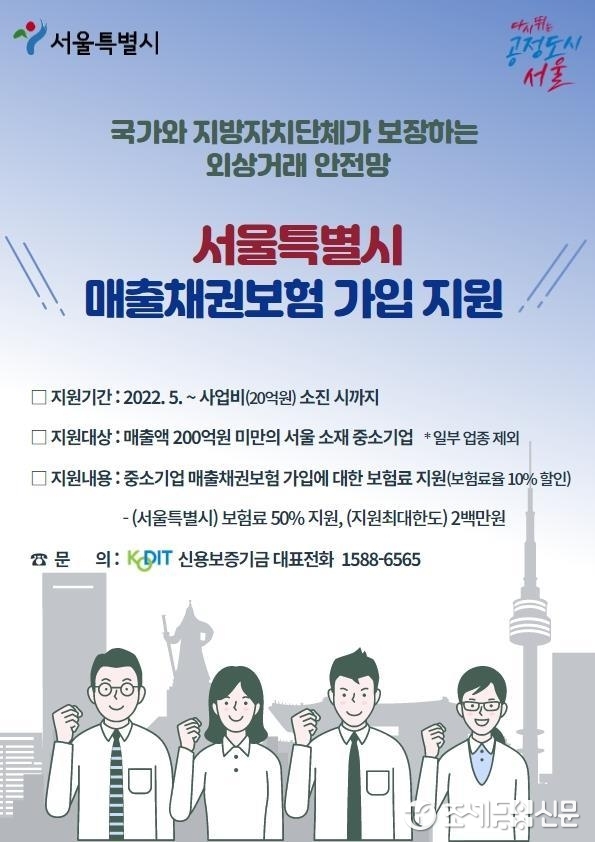 서울시 관계자는 "코로나19 장기화, 우크라이나 사태 등 예상치 못한 경영환경 변화로 어려움을 겪고 있는 중소기업의 연쇄 부도 위험을 사전에 차단하기 위해 매출채권보험 가입을 지원한다"고 설명했다.