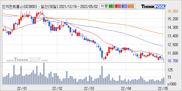 인지컨트롤스의 2021년 매출액은 4849억으로 전년대비 5.7% 상승했고, 영업이익은 20억으로 흑자전환했다. 이 회사의 매출액 증감률과 영업이익 증감률은 각각 코스피 하위 31%, 상위 17%에 해당된다.
