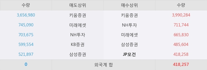 거래원 동향은 JP모건, NH투자, 미래에셋 등이 매수 상위 목록에 나타나고 있다.