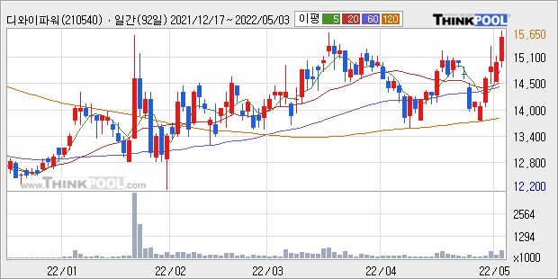 디와이파워의 2021년 매출액은 전년대비 43.4% 늘어난 4372억원이고, 영업이익 또한 전년대비 18.7% 늘어난 422억원을 기록했다. 이 회사의 매출액 증감률과 영업이익 증감률은 각각 코스피 상위 12%, 하위 48%에 해당된다.