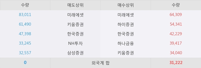 거래원 동향은 미래에셋, 하나금융 등이 매수 상위 목록에 나타나고 있다.