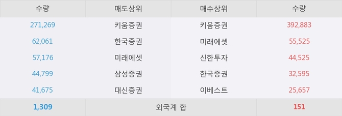 이 시각 주요 거래원은 미래에셋, 키움증권, 신한투자 등이 매수 상위 창구에 자리하고 있다.