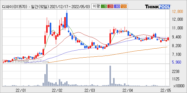 디와이의 2021년 매출액은 9984억으로 전년대비 26.5% 상승했고, 영업이익 또한 468억으로 전년대비 12.2% 상승했다. 이 회사의 매출액 증감률과 영업이익 증감률은 각각 코스피 상위 26%, 하위 45%에 해당된다.