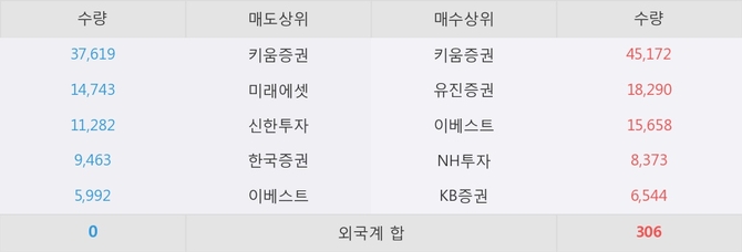 이 시각 주요 거래원은 NH투자, 키움증권, 유진증권 등이 매수 상위 창구에 자리하고 있다.