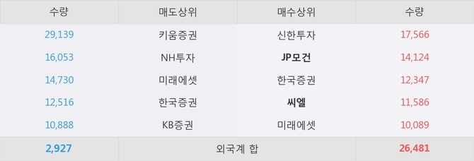 거래원 동향은 JP모건, 씨엘, 미래에셋 등이 매수 상위 목록에 위치하고 있다.