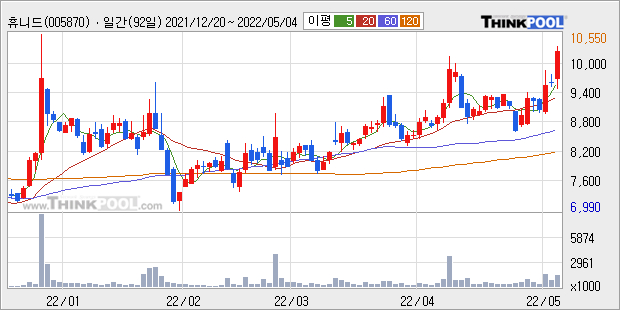 휴니드의 2021년 매출액은 전년대비 15.0% 늘어난 2277억원이고, 영업이익 또한 전년대비 25.6% 늘어난 133억원을 기록했다. 이 회사의 매출액 증감률과 영업이익 증감률은 각각 코스피 상위 45%, 상위 49%에 해당된다.