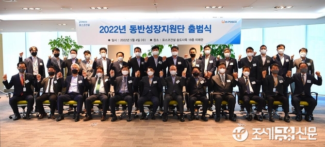 5일 포스코건설은 전날 인천 송도사옥에서 회사 임직원과 협력사 대표 30여명이 참석한 가운데 '동반성장지원단'을 출범시키고 기술, 컨설팅, 교육 등 3개 분야에서 협력사들을 지원하기로 했다고 밝혔다.