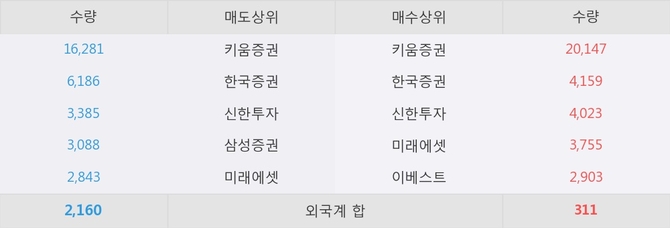 이 시각 주요 거래원은 미래에셋, 키움증권, 한국증권 등이 매수 상위 창구에 자리하고 있다.