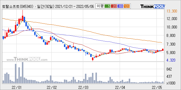 토탈소프트의 2021년 매출액은 141억으로 전년대비 16.1% 상승했고, 영업이익 또한 30억으로 전년대비 19.2% 상승했다. 이 회사의 매출액 증감률과 영업이익 증감률은 각각 코스닥 상위 45%, 하위 49%에 해당된다.