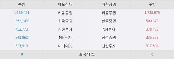 아직까지 외국계 증권사 창구를 통한 매매는 발생하지 않고 있다. 그리고 이 시간 한국증권이 매수창구상위에 올라있는 종목은 이 종목 이외에도 KODEX 미국나스닥100레버리지(합성 H), CJ씨푸드 등이 있다.