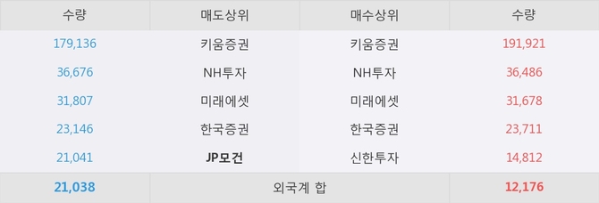거래원 동향은 NH투자, 미래에셋 등이 매수 상위 목록에 나타나고 있다. 한편, 매도 창구 상위에는 JP모건이 눈에 띄고 있다.