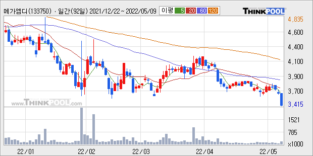 메가엠디는 2021년 매출액 794억원과 영업이익 77억원을 기록했다. 전년대비 매출은 -3.7% 하락했고, 영업이익은 8.2% 상승했다. 이 회사의 매출액 증감률과 영업이익 증감률은 각각 코스닥 하위 22%, 하위 45%에 해당된다.