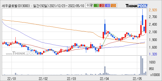세우글로벌의 2021년 매출액은 324억으로 전년대비 18.0% 상승했고, 영업이익 또한 26억으로 전년대비 44.5% 상승했다. 이 회사의 매출액 증감률과 영업이익 증감률은 각각 코스피 하위 1%, 하위 1%에 해당된다.