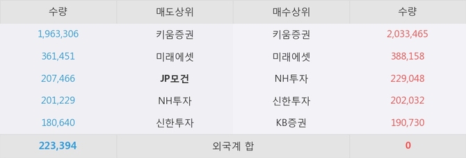 거래원 동향은 미래에셋, NH투자 등이 매수 상위 목록에 나타나고 있다. 한편, 매도 창구 상위에는 JP모건이 눈에 띄고 있다.