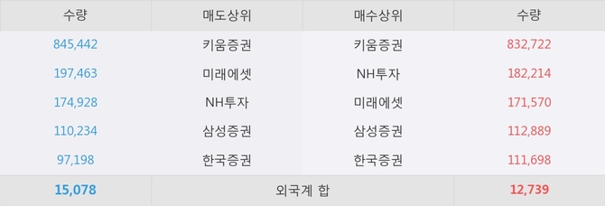 거래원 동향은 NH투자, 미래에셋, 삼성증권 등이 매수 상위 목록에 나타나고 있다.