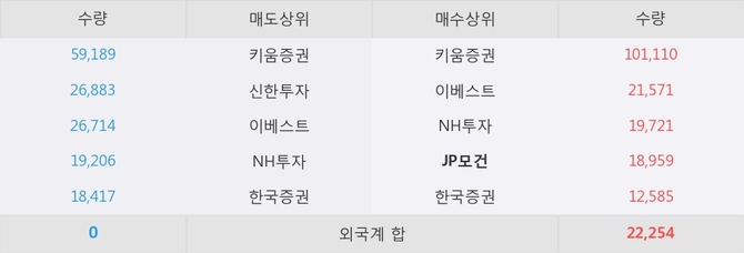 거래원 동향은 JP모건, NH투자가 매수 상위 목록에 나타나고 있다.
