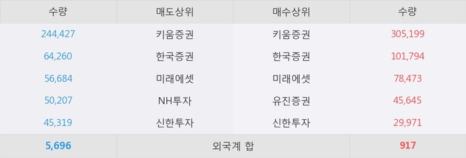 이 시각 주요 거래원은 미래에셋, 키움증권, 한국증권 등이 매수 상위 창구에 자리하고 있다.