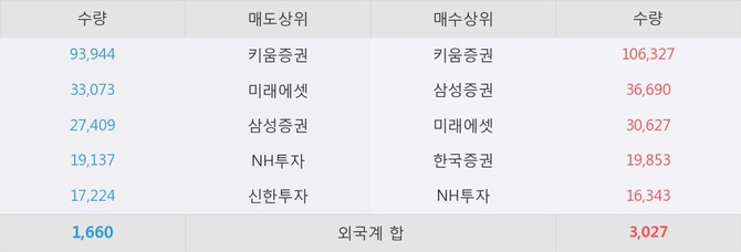 거래원 동향은 삼성증권, 미래에셋, NH투자 등이 매수 상위 목록에 나타나고 있다.