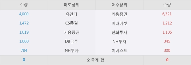 거래원 동향은 미래에셋, NH투자 등이 매수 상위 목록에 나타나고 있다. 한편, 매도 창구 상위에는 CS증권이 눈에 띄고 있다.