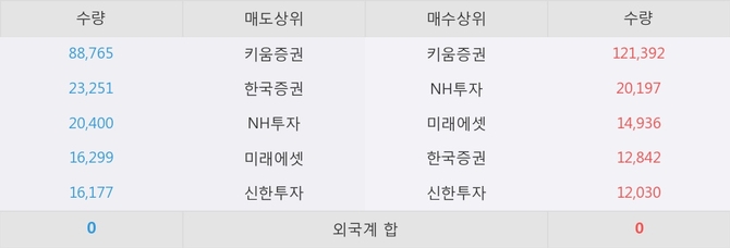 거래원 동향은 NH투자, 미래에셋 등이 매수 상위 목록에 나타나고 있다.