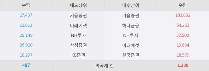 거래원 동향은 하나금융, NH투자, 미래에셋 등이 매수 상위 목록에 나타나고 있다.