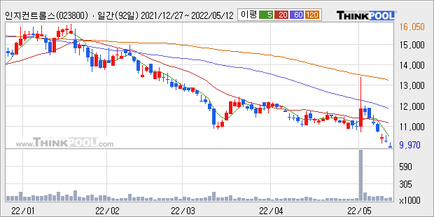 인지컨트롤스의 2021년 매출액은 전년대비 5.7% 늘어난 4849억원이고, 영업이익은 흑자전환해서 20억원을 기록했다. 이 회사의 매출액 증감률과 영업이익 증감률은 각각 코스피 하위 31%, 상위 17%에 해당된다.