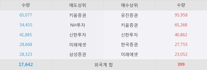 이 시각 주요 거래원은 미래에셋, 유진증권, 키움증권 등이 매수 상위 창구에 자리하고 있다.