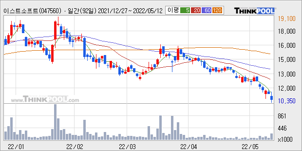 이스트소프트의 2021년 매출액은 전년대비 7.1% 늘어난 896억원이고, 영업이익 또한 전년대비 71.3% 늘어난 101억원을 기록했다. 이 회사의 매출액 증감률과 영업이익 증감률은 각각 코스닥 하위 38%, 상위 32%에 해당된다.