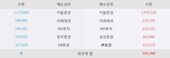 거래원 동향은 JP모건, 미래에셋, NH투자 등이 매수 상위 목록에 나타나고 있다.