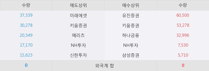 거래원 동향은 하나금융, NH투자, 삼성증권 등이 매수 상위 목록에 나타나고 있다.