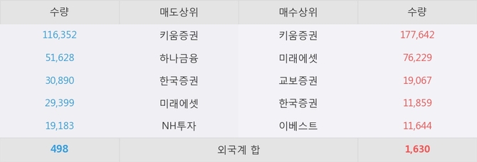 이 시각 주요 거래원은 미래에셋, 키움증권, 교보증권 등이 매수 상위 창구에 자리하고 있다.