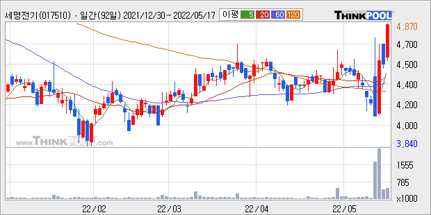 세명전기는 2021년 매출액 150억원과 영업이익 16억원을 기록했다. 전년대비 매출은 5.0%, 영업이익은 710.0% 각각 상승했다. 이 회사의 매출액 증감률과 영업이익 증감률은 각각 코스닥 하위 34%, 상위 3%에 해당된다.