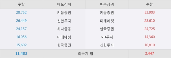 거래원 동향은 하나금융, 미래에셋 등이 매도 상위 목록에 나타나고 있다.