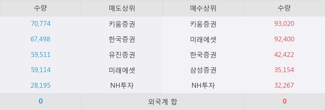 거래원 동향은 미래에셋, NH투자 등이 매도 상위 목록에 나타나고 있다.