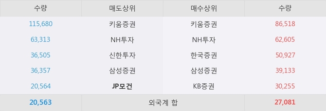 거래원 동향은 NH투자, 삼성증권 등이 매수 상위 목록에 나타나고 있다. 한편, 매도 창구 상위에는 JP모건이 눈에 띄고 있다.