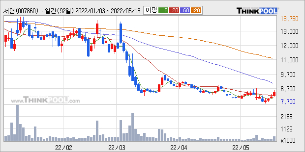 서연의 2021년 매출액은 전년대비 10.8% 늘어난 2조 4793억원이고, 영업이익 또한 전년대비 57.8% 늘어난 837억원을 기록했다. 이 회사의 매출액 증감률과 영업이익 증감률은 각각 코스피 하위 43%, 상위 37%에 해당된다.