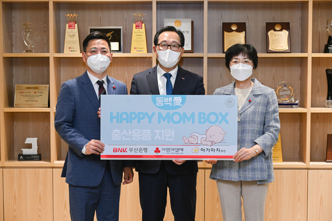 (조세금융신문=진민경 기자) BNK부산은행은 저소득 출산가정 지원을 위해 육아용품으로 구성된 ‘동백애(愛) 해피맘박스’를 부산사회복지공동모금회에 전달했다고 18일 밝혔다.