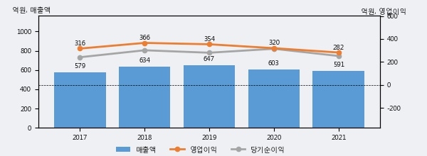 케어젠의 2021년 매출액은 591억으로 전년대비 -2.0% 하락했고, 영업이익 역시 282억으로 전년대비 -11.8% 하락했다. 이 회사의 매출액 증감률과 영업이익 증감률은 각각 코스닥 하위 25%, 하위 35%에 해당된다.