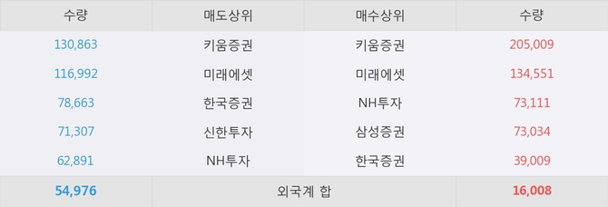 거래원 동향은 미래에셋, NH투자, 삼성증권 등이 매수 상위 목록에 나타나고 있다.