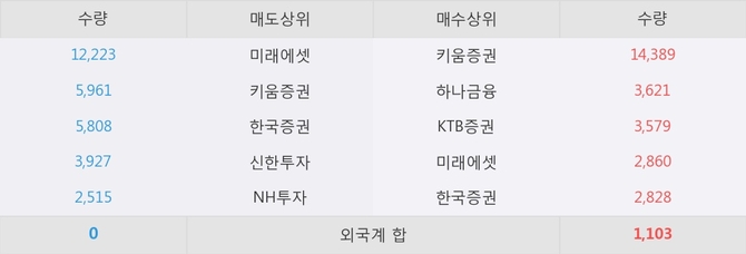 거래원 동향은 하나금융, 미래에셋 등이 매수 상위 목록에 나타나고 있다.