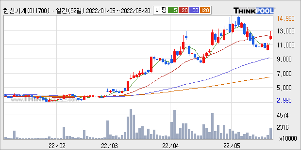 [그래프]한신기계 일봉 차트