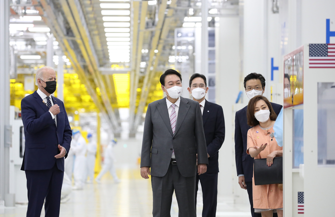 삼성은 바이든 대통령의 방한을 계기로 미국 내 반도체 업계에 520억달러(약 66조원)를 지원하기 위한 법안이 조속히 미 의회를 통과하고, 미국 파운드리 공장 건설도 탄력을 받기를 기대하고 있다.