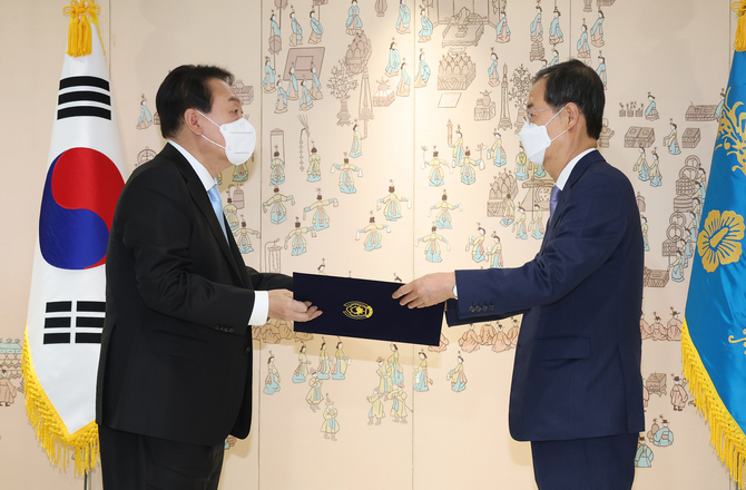 이로써 윤 대통령이 당선인 신분이던 지난달 3일 "경제안보 시대 적임자"라며 한 총리를 지명한 지 48일 만에 '1기 내각'의 컨트롤타워가 채워졌다.