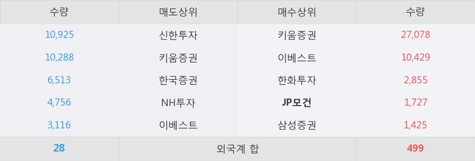 거래원 동향은 JP모건, 삼성증권이 매수 상위 목록에 나타나고 있다.